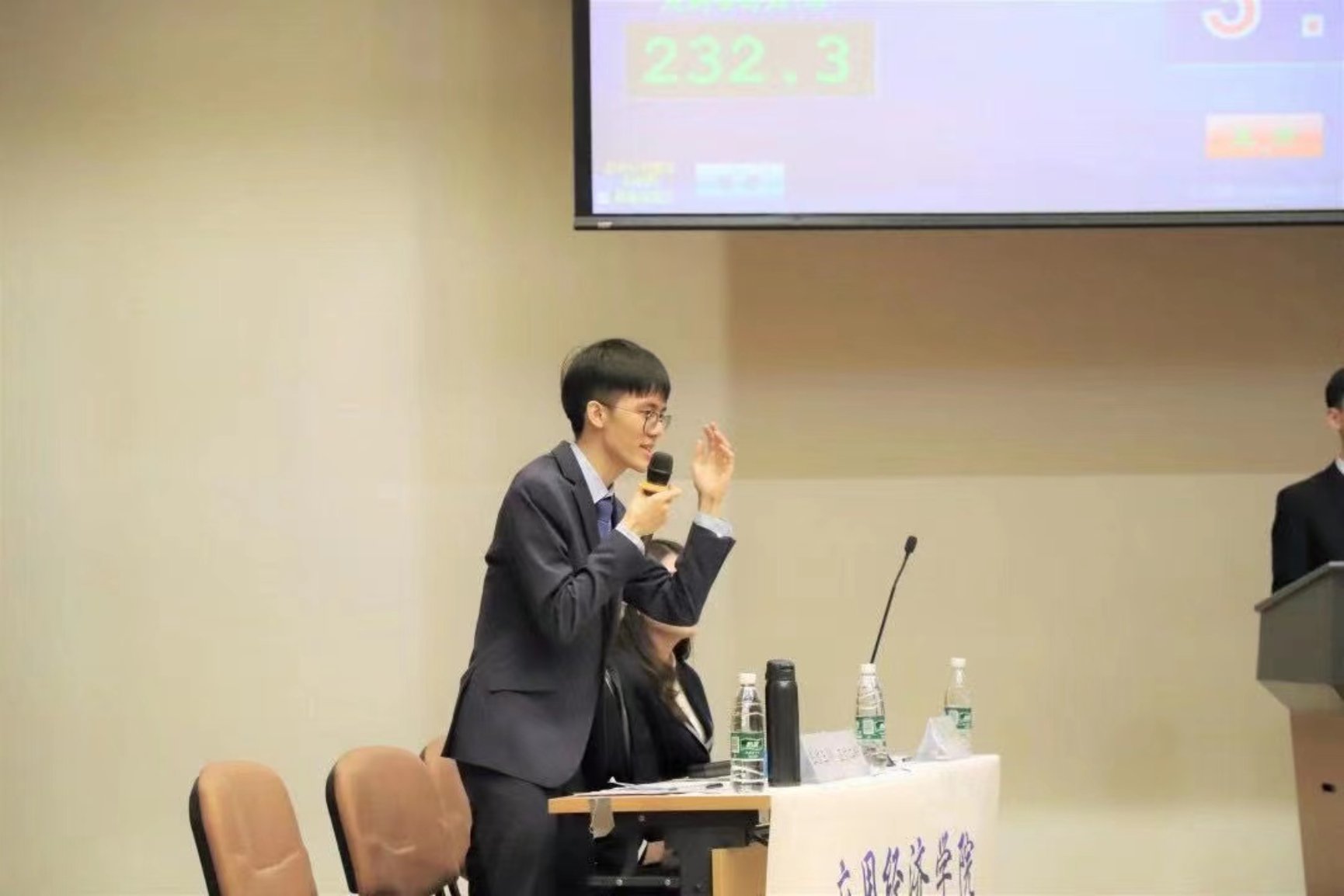 二辩俞小坤同学在对辩环节逻辑清晰,层层推进。
