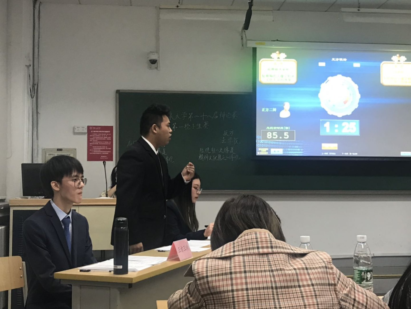 自由辩中,双方选手争锋相对又不失风度,你来我往,互不相让。