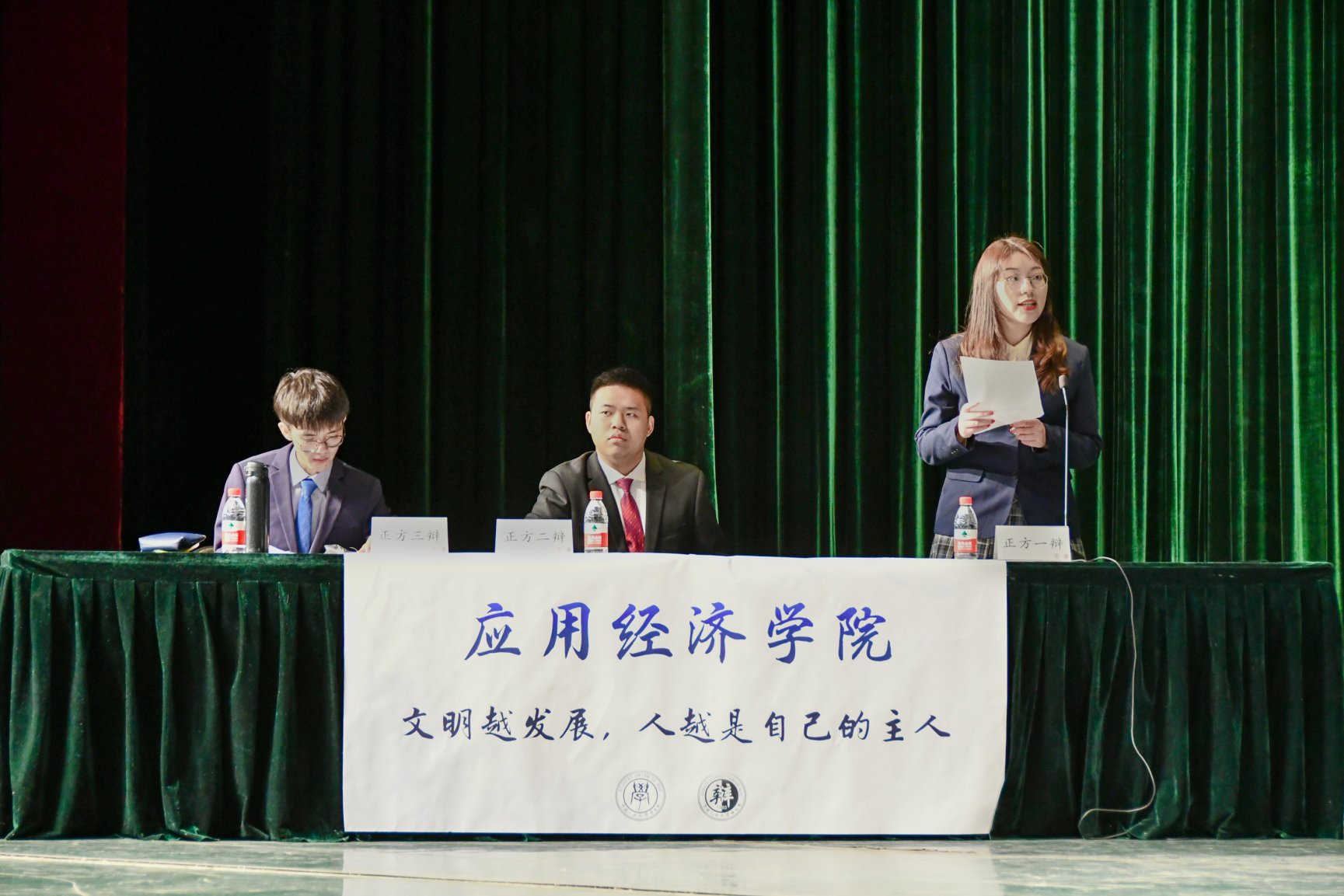 本场比赛,我院辩论队持正方,认为“文明越发展,人越是自己的主人”。